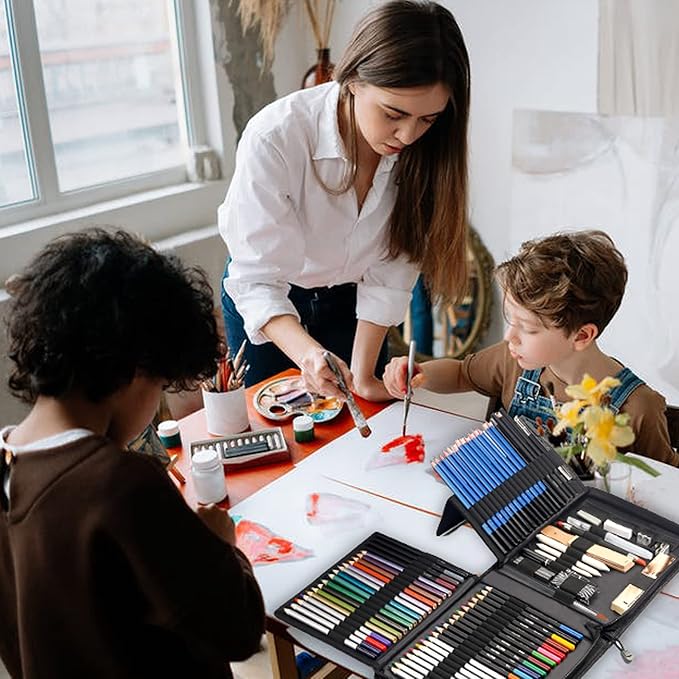 - 【Premium Drawing Accessories】:A variety of painting tools make your creation more convenient,The right art tools further enhance your drawing skills.These accessories include 4 willow charcoal,3 Blending Stump,3 charcoal sticks,3 graphite sticks,Metal Sharpener, plastic sharpener,Vinyl Eraser, Kneaded Eraser,Pencil Extender, Sandpaper Block, Artist Brush,water brush pen,marker,artists knife.