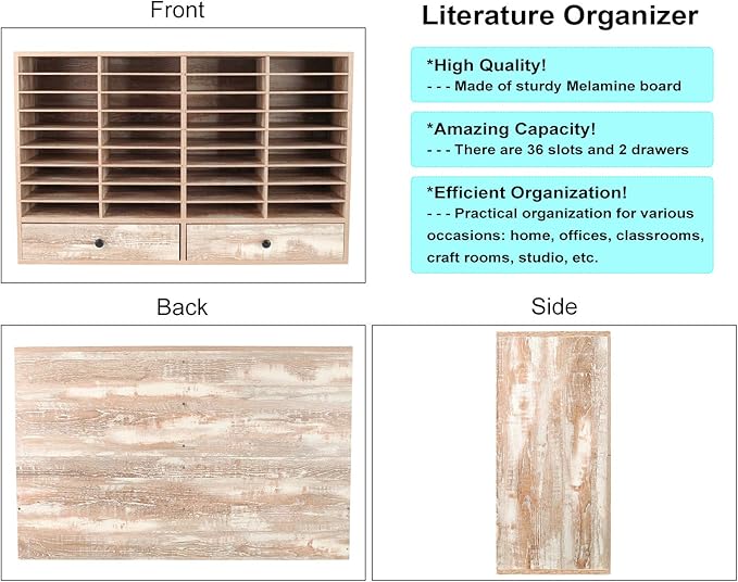 - ▶High Quality. The literature organizer is made of excellent quality Melamine Faced Board, wear-resistant and waterproof, durable and resistant to cracking, suitable for many years and withstand lots of use