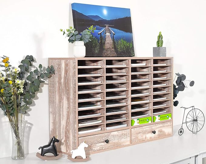 PAG Mail Sorter Organizer, Wood Literature Organizer, Student Mailbox for Classroom, Desktop Bill Paper Organizer for Office Home School, 38 Compartments, Retro White