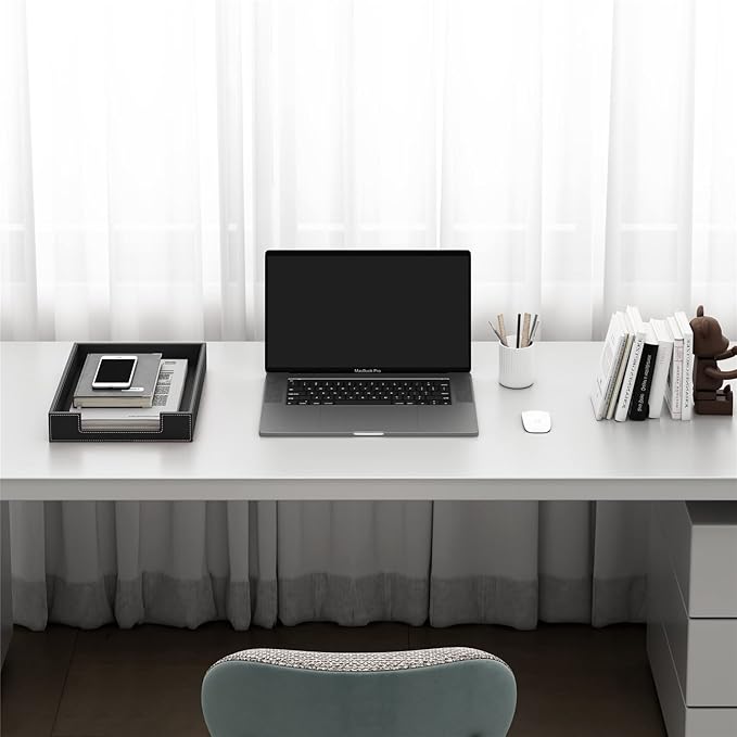 Leather Letter Tray, THIPOTEN Elegant Desk Organizer for Office Supplies, Mail, Paper, File, Magazine, Perfect Office Organization for Desktop(Black)