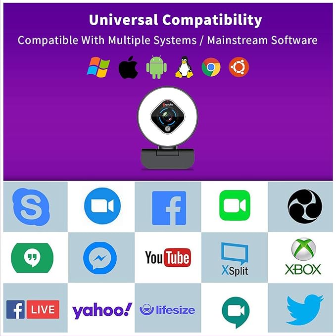 - Web Camera with Dual Microphones:The web cameras for computers built-in dual noise-canceling microphones reduce ambient noise to enhance the sound quality of your video. Even in noisy surroundings, you can capture the pure and clear sounds. Webcamera Compatible with Zoom/ Skype/ Facetime/ Video Calling/ OBS/ Facebook/ YouTube/ Xbox one/ XSplit/ Conferencing/ Game Streaming/ Recording for Desktop PC Mac Computer