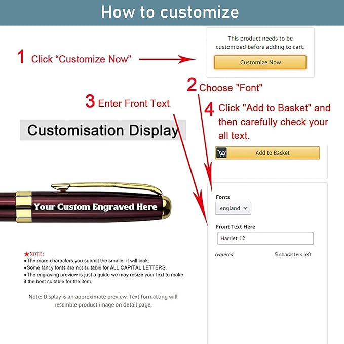 - FREE PERSONALIZATION You can have up to 50 characters (including spaces) on each line, up to 2 customized lines are free. we use laser engraving technology to engrave the text on the pen without fading. As long as you click the "Customize" option, you can easily customize it. Beautiful appearance, suitable for gift.