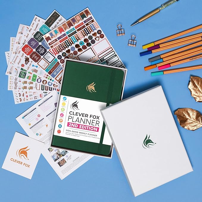 Clever Fox Planner 2nd Edition – Colorful Weekly & Monthly Goal Planner, Time Management & Productivity Organizer, Undated, A5 (Forest Green)