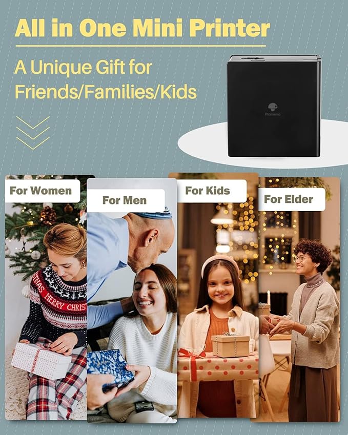 - Portable Size and Fashion Design- M02 pocket printer simple and stylish shape with mini size (3.39 x 3.31 x 1.65 inches) slips neatly into your pocket. This sticker printer shares joy with family and friends during leisure moments, holiday moments