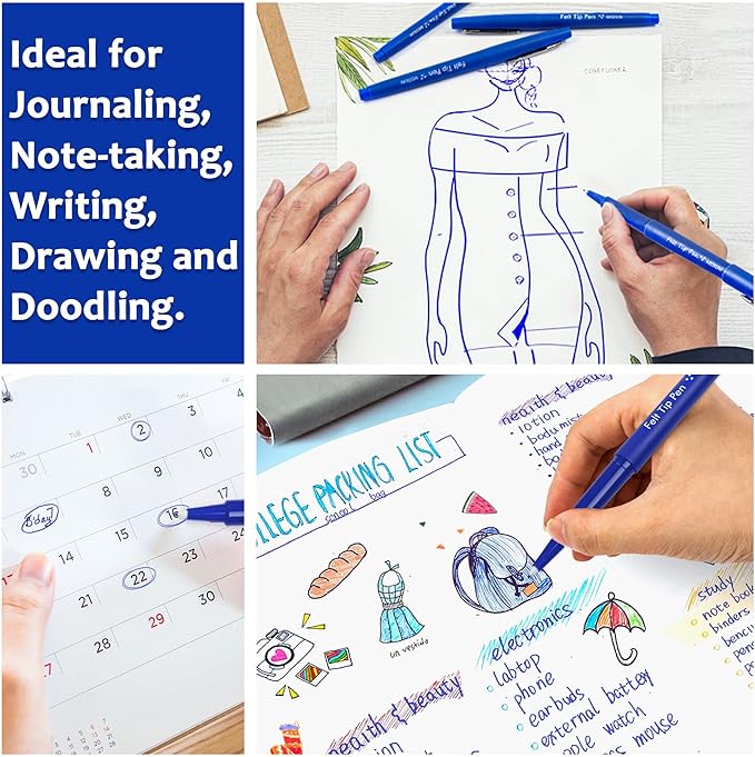 - UNLIMITED USES: Lelix felt tip pens are ideal for journaling, writing, note taking, planner, doodling. Also great as school and teacher supplies for drawing lines, graphs, tables, and equation. The most suitable choice for kids and adults, students and teachers.