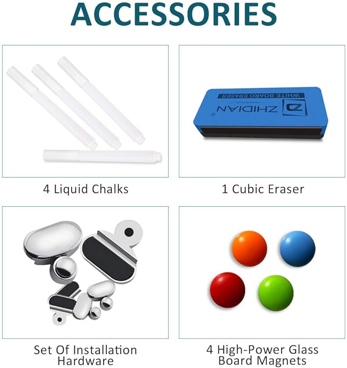 - 【EASY INSTALLATION】Mounts vertically or horizontally, you can complete the installation without professional technicians. Simply follow the straightforward instructions, and you'll have your new glass chalkboard up and ready to use in no time