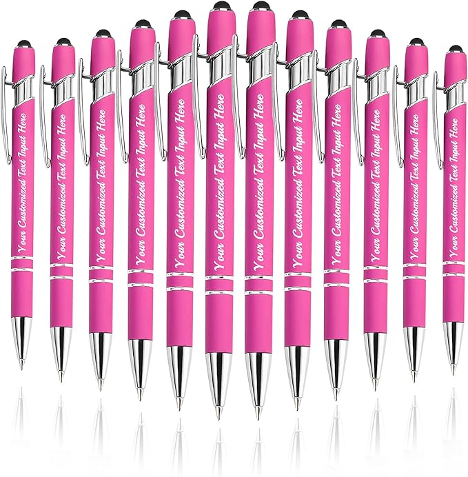 Personalized Ballpoint Pen 12pcs, Custom Pens Free Engraved Bulk with Name Logo, Soft Black Ink Stylus with Touch Metal Office, Gift for Anniversaries, Graduations, Birthdays