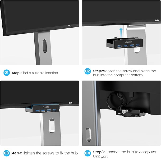 - Clamp Usb Hub: ORICO USB Hub designed with adjustable screw allow you to mount monitor screen edge or desk edge thickness from 0.39 to 1.26 inches (10-32mm), without occupying much space and keeping your desk top neat. The fix Hub is easy installation and sturdy and rubber cover on the screw can protect monitor's finish.