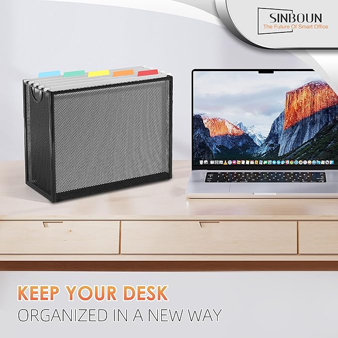 Sinboun Hanging File Organizer Letter-Size File Holder Filing Box Includes 5 Hanging Folders - Metal Mesh Magazine Letter Storage Cabinets File Cart for Office Home School, No Assembly Required