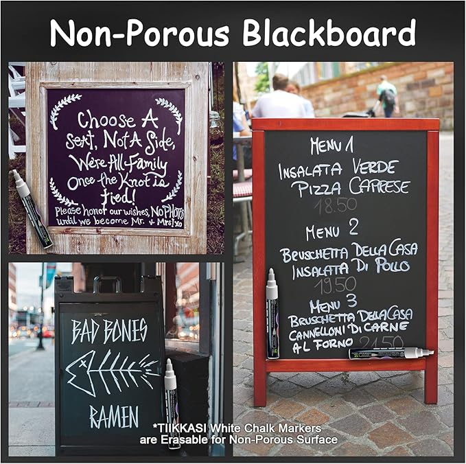 - Easy to Clean: Designed to wipe clean with a damp cloth and water, these markers work seamlessly on non porous chalkboards, bistro boards, blackboards, whiteboards, glass boards, mirrors, acrylic boards, car windows, wall planner, acrylic calendar and more. They’re ideal for creating dynamic event signage, teaching lessons, or updating daily planners with ease
