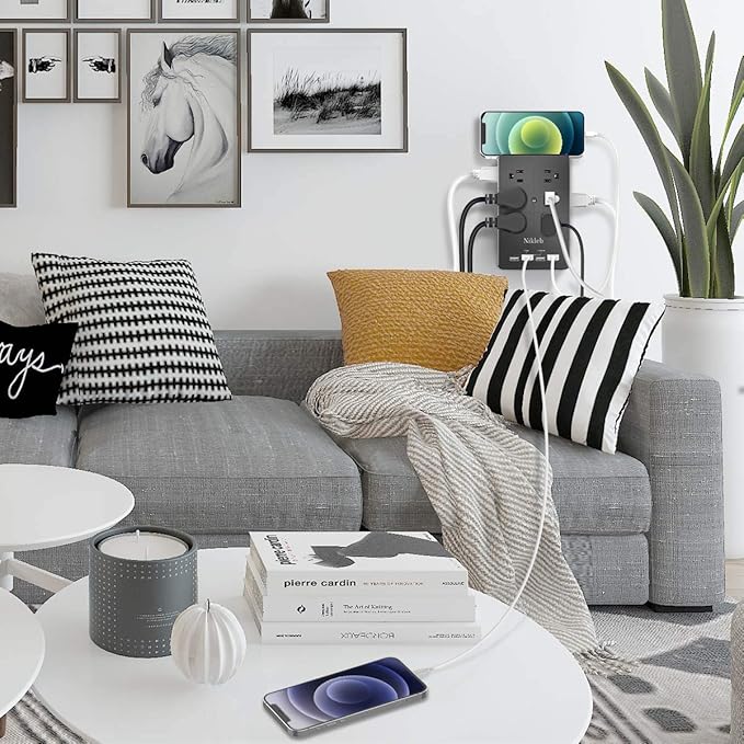 Surge Protector Nikleb, Wall Outlet with 4 USB Ports 5V 4.8A Total, 12 Multi Outlet Extender, Multiple USB Plug Adapter Wall Mount, Phone Chargier Organizer with Phone Holder, Heavy Duty