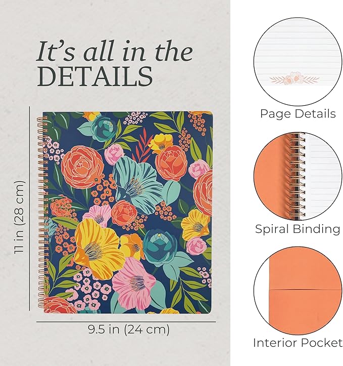 - INTERIOR POCKET: Features a durable hardcover with a pretty floral design and a double sided storage pocket to keep loose notes organized