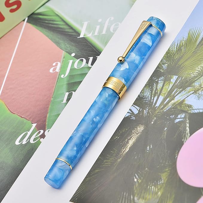 • The acrylic resin celluloid evokes a vintage aesthetic, particularly sky blue marble design that appears in this pen