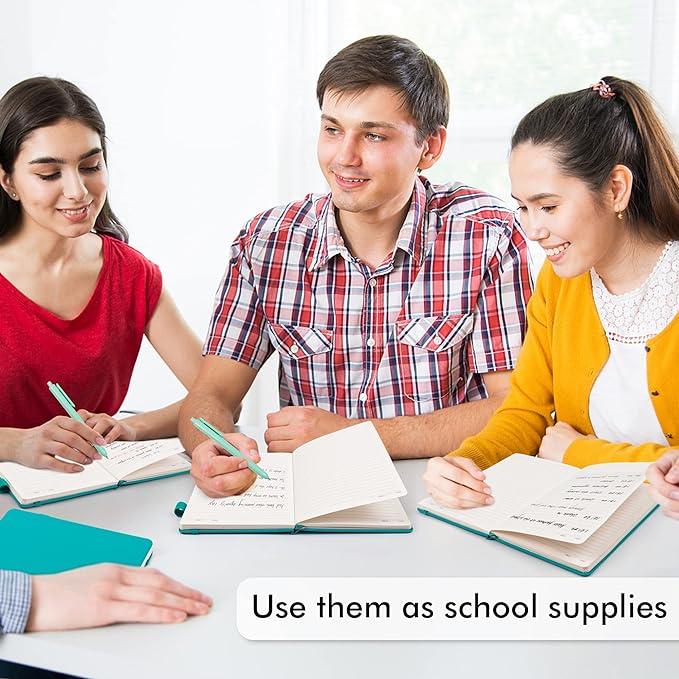 - Feela 24 Pack Classic Ruled Notebooks contains 24 classic emerald ruled sturdy cover notebooks and 24 Black Retractable Pens. Each of the notebooks measures 8.3” x 5.1”, which is perfect to carry and easily held by young girls and boys. These black cute pens are customized to be placed in the pen holder, which is pretty convenient.