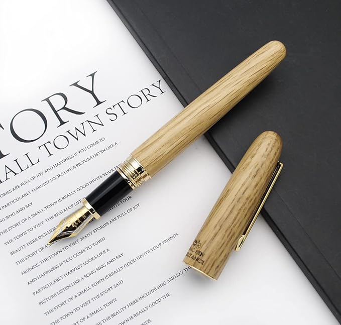 JINHAO 9036 Natural Wood Fountain Pen Handmade Ink Pen (Medium Nib 0.7mm, Oak Wood)