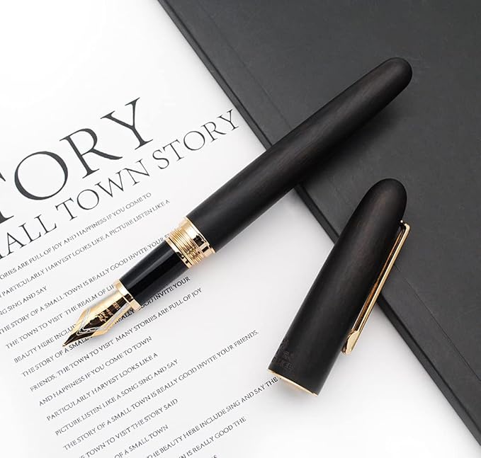 JINHAO 9036 Natural Wood Fountain Pen Handmade Ink Pen (Medium Nib 0.7mm, Ebony Wood)