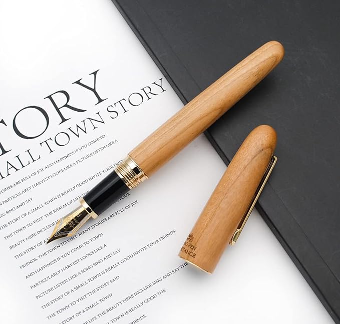 JINHAO 9036 Natural Wood Fountain Pen Handmade Ink Pen (Fine Nib 0.5mm, Cherry Wood)