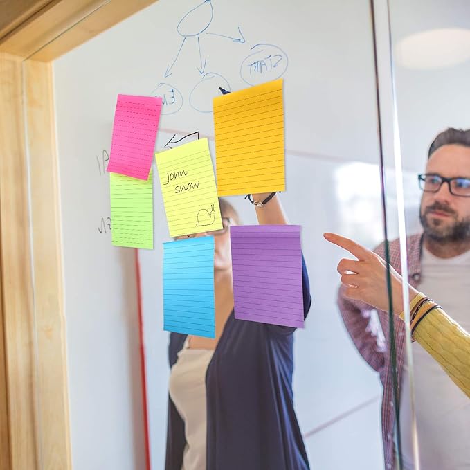 Outus 36 Pack Lined Sticky Notes 4 x 6 Inch Colorful Note Pads Back to School Lines Bright Ruled Self Sticky Pads Memos for Teacher School Classroom Office Supplies, 6 Colors (Fresh Color)