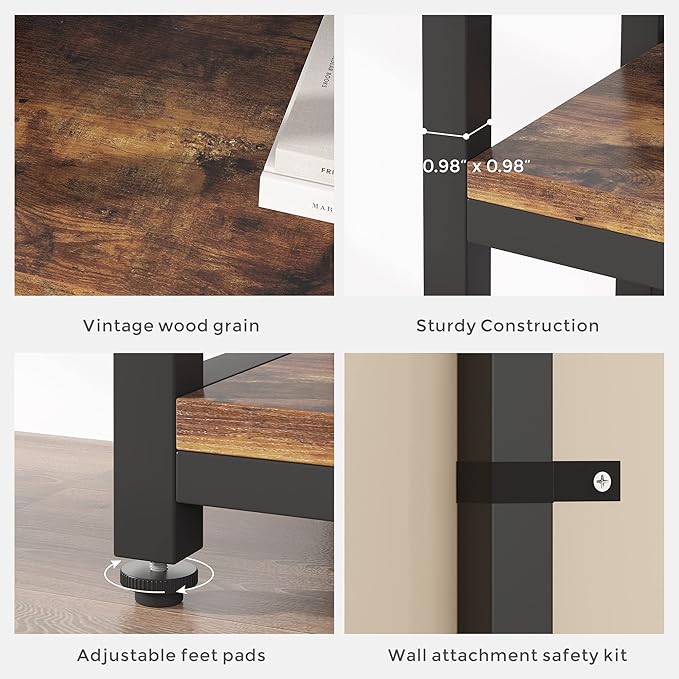 - 【Unique Staggered Design】Combining wood grain and metal, this open bookshelf adds an industrial aesthetic to your home and it can easily fit any room and decor. Fill the bookcase with books, photos and decorations to make it an eye-catching of your home