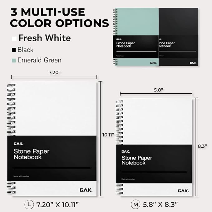 - ECO-FRIENDLY PAPER MADE OF STONE : 100% Recyclable and 60% reduction in carbon emissions. In addition, every inner paper of the waterproof notebook is made of stone paper as well. By just using GAK.'s waterproof thick paper notebook, you are using 100% recyclable stone paper and naturally participating in environmental protection.