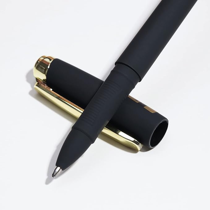 - There are 12 pens in a box. 1.0mm rollerball gel ink pen set with black ink.