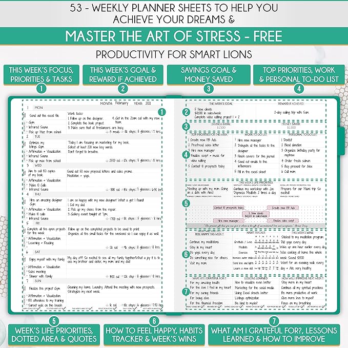 - SELF CARE PLANNER - This premium planner is undated and combines daily, weekly, and monthly planning features along with productivity, goal setting, business organization, to-do lists, notebook functionality, and gratitude journaling all in one. It includes goal-setting guidance that teaches you how to apply the law of attraction and vibration principles to become the best possible version of yourself on a mental, physical, and interpersonal level, thereby increasing productivity and happiness.