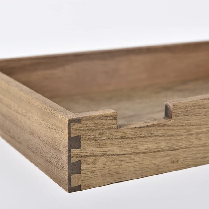 - [WITH NAME CARD HOLDER]: The office supplies holder trays comes with a delicate bronzed card holder,which is perfect for home decor on desks, tables, or counter tops,storing various small objects as desktop mail tray or desk mail organizer.The metal tag holder makes this cute wooden tray more practical and adds a touch of vintage.
