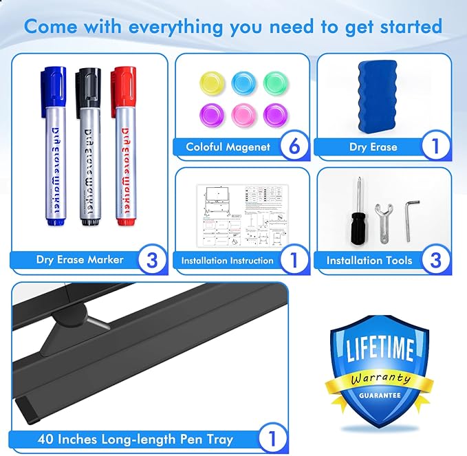 - Customer-friendly Design: The 72 x 40 inches whiteboard is finished with two 36 x 40 inches magnetic whiteboard that can be folded, which significantly reduces product damage during shipment. Also, the high-end three-layered baking whiteboard comes with double-sided durable surface, anti-scrap and easily dry wipe with any dry erasers. The surface reflects softly and does not dazzle brightly. This helps you perform better on business presentation, teaching or training