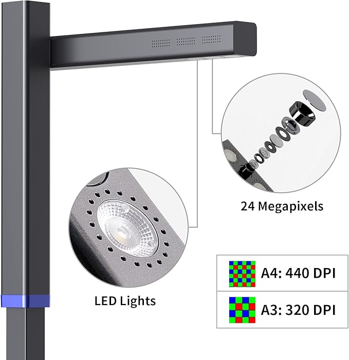- Upgraded Features: 24MP High-Quality Auto-Focus Camera, Resolution upgraded to 5696*4272, DPI 440(A4 8.268 x 11.693)/ 320(A3 11.693 x 16.535). Notice: glossy materials(glossy photo,glossy magzine)are NOT recommended