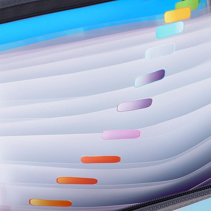 - Zipper Front Pouch & Colorful Labels: The front zipper pocket is perfect for putting pens, name cards, sticker paper and other frequently-used items. Accordion file folder comes with 27 pcs colorful sticky labels, which can help to distinguishing each pocket documents, convenient and quickly find out your needed files.