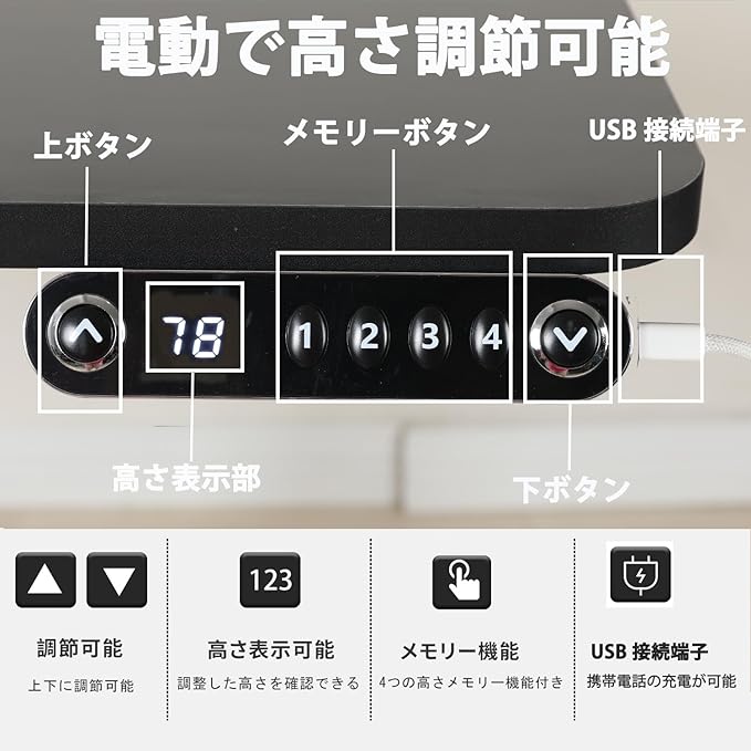 - Electric Height Adjustable: The height-adjustable standing desk can be adjusted in height from 27" to 45" according to your needs. 4 programmable memory presets can be easily and quickly raised and lowered, long press until you hear a beep to remember the commonly used height.
