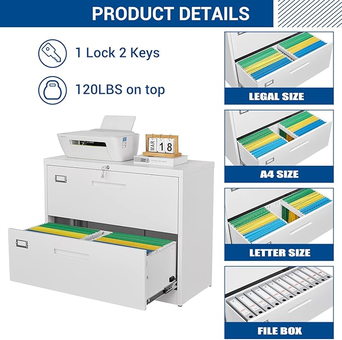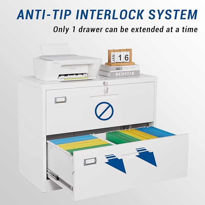 Lateral File Cabinet with Lock, 2 Drawer Large Metal Filing Cabinet,Home Office Lockable Storage Cabinet for Hanging Files Letter/Legal/F4/A4 Size-Assembly Required