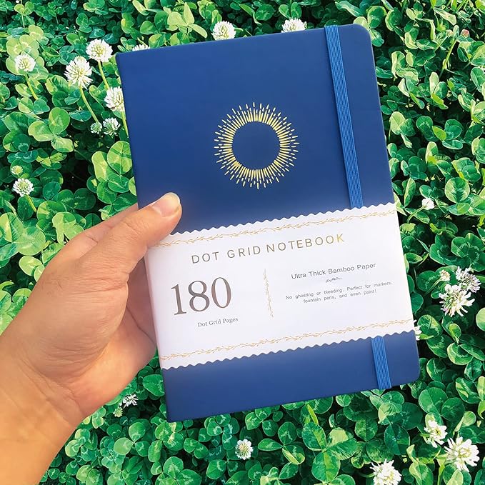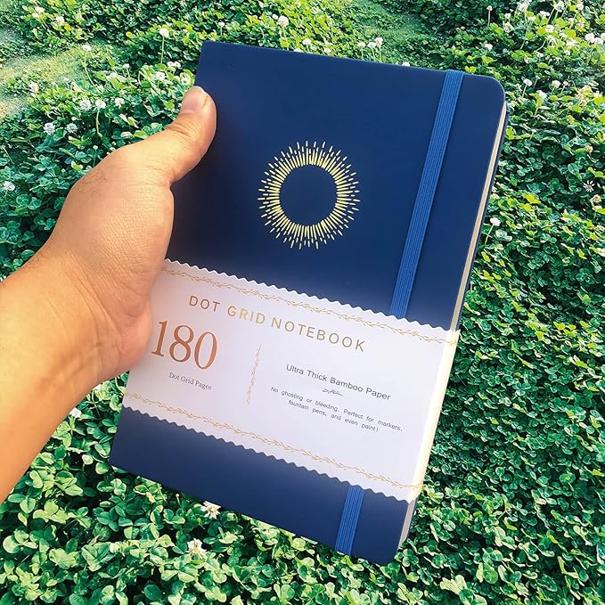 Dotted Notebook Journal 180GSM Bamboo Thick White Paper 160 Pages 5 * 5MM Dot Grid, Lay Flat Binding,Colored Silver Edges, Bookmarks and Expandable Back Pocket (BKP-3)