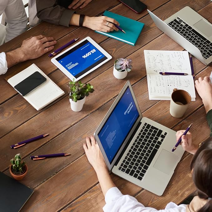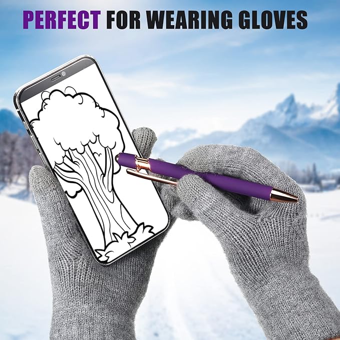 Tenare 12 Pieces 2 in 1 Stylus Metal Ballpoint Pen with Stylus Tip, 1.0 mm Black Ink Ballpoint Pen for Touch Screens(Purple and Rose Gold)
