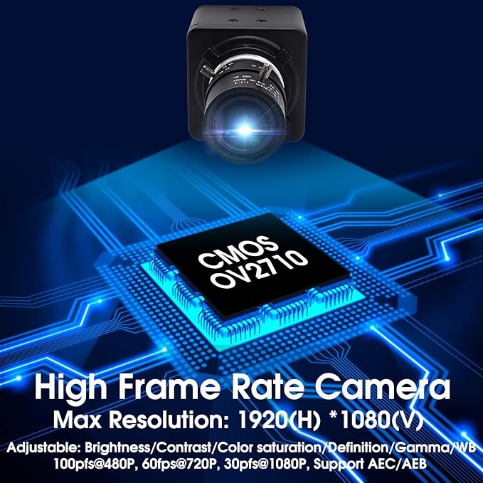 - High Frame Rate: USB camera with high frame rate 1080P 30fps per second, 720P 60fps per second, VGA/48P 100fps per second. Deliver smooth pictures while catching up moving objects. Great for video calling, streaming, studio recording and for Raspberry Pi.High speed USB 2.0 webcam output format support MJPEG/YUY2