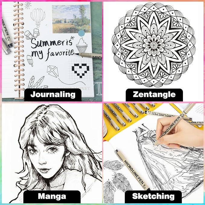 - 【100% Satisfaction Guarantee】This set of 12 micro-line pens is a good choice for beginners in painting, sketching, writing, drawing, lettering, illustration, scrapbooking, and bullet journaling. Customer satisfaction is our number one priority. If in any unfortunate situation the fineliner ink pens are inoperable, damaged, leaked, please simply request a refund or replacement