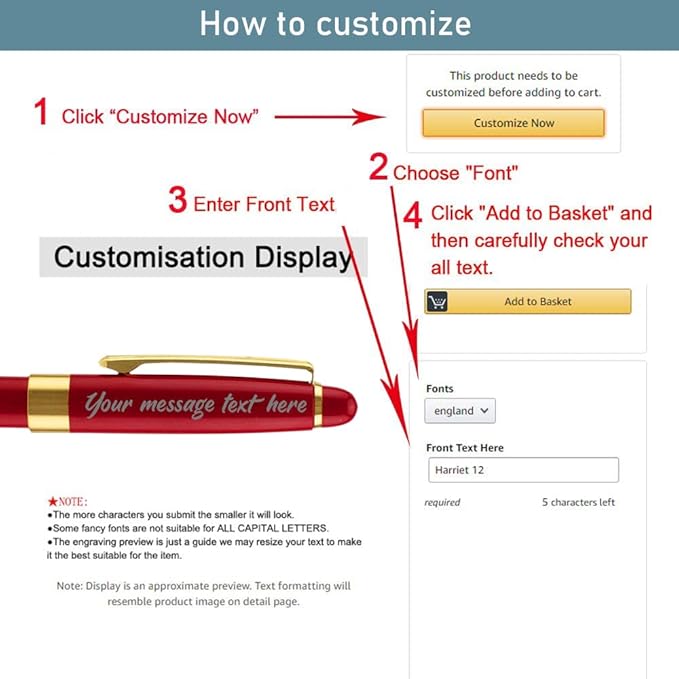 - FREE PERSONALIZATION You can have up to 50 characters (including spaces) on each line, up to 2 customized lines are free. we use laser engraving technology to engrave the text on the pen without fading. As long as you click the "Customize" option, you can easily customize it. Beautiful appearance, suitable for gift.