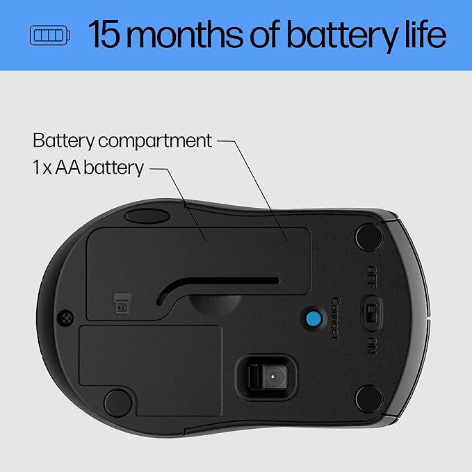 - DEPENDABLE POWER: With up to 15 months of use on a 1 AA battery (3), this HP wireless mouse is designed to push the limits and work as hard as you do