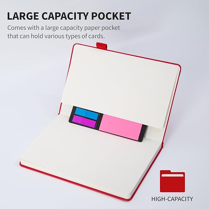 - 🌈【Multifunctional Accessories】⭐This classic 5.6" x 8" vegan leather journal features a durable and water-resistant cover, 160 college ruled lined pages, inner expandable pocket, pen holder, ribbon bookmark & elastic closure band