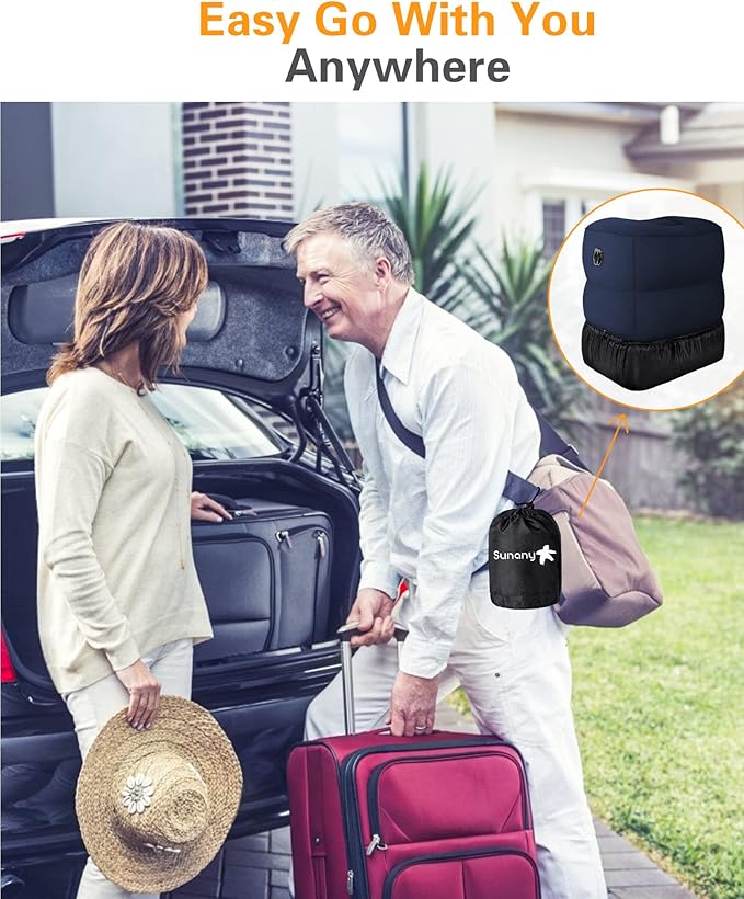 Sunany Inflatable Foot Rest Pillow for Travel, Kids/Adults Airplane Travel Pillow-Adjustable Height Cushions,for Kids to Sleep While Traveling,Suitable for Office, Home and Any Travel(Blue)