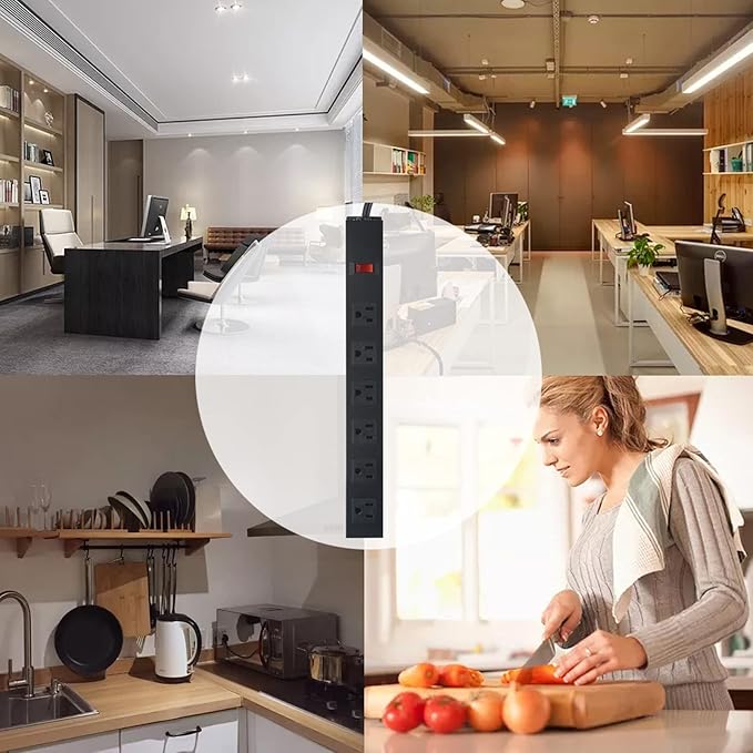 - 6 Outlet Wall Mount Power Strip: Is made of aluminum alloy, excellent workmanship, sturdy and durable. Perfect indoor use for any workshops, enclosed garages, offices, home, workbench, industrial and so on applications. Provide 4 screws, you can mount it where you want to.