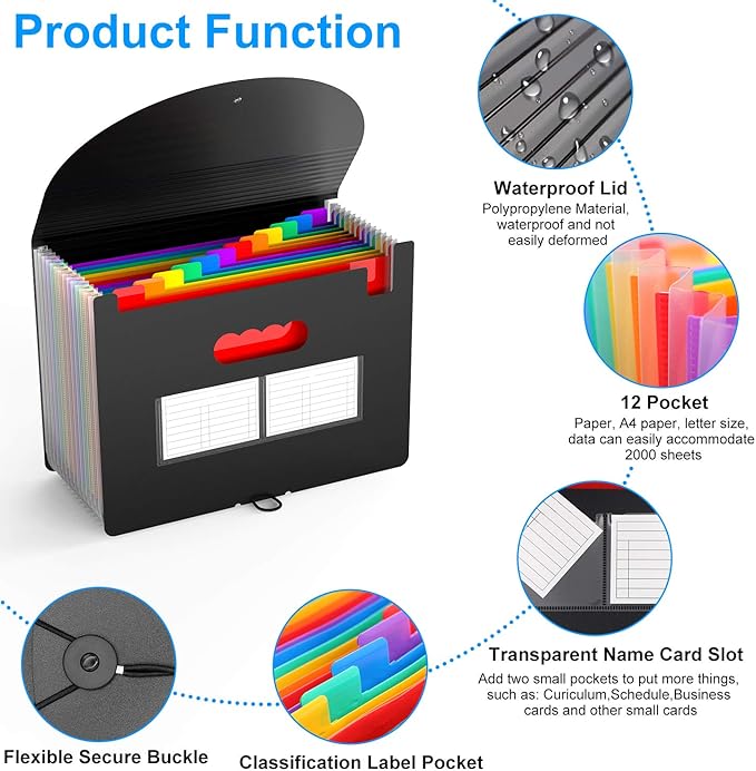 - đăPortableă- The compact design of this accordion file organizer makes it convenient to carry with you on the go. It fits easily into a backpack, briefcase, or tote bag, so you can have your important documents with you wherever you go.