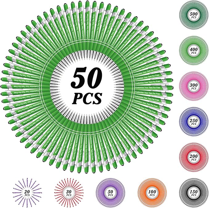 - ✍ Custom Pens Bulk: We provide 50+/100+/150+/250+/300+/400+/500 pcs pens for you to customize. You can leave any text you need on the pen, and we will engrave it perfectly on each pen. These multi-colored pens with perfect craftsmanship will be the best choice for parties, conferences, trades, companies, churches, etc.