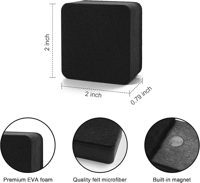 Dry Erase Erasers, IHPUKIDI 48 Pack Magnetic Whiteboard Dry Eraser Chalkboard Cleansers for Classroom, Home and Office (Black 2 x 2 Inch)