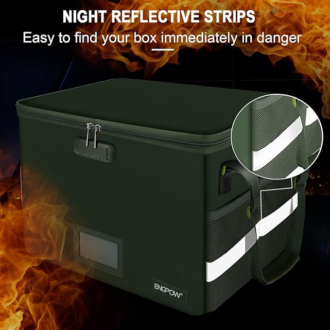 - Fireproof and water-resistant: Fireproof lock box is made of double layered non-itchy silicone coated fiberglass which stands up the temperature up to 2000℉.It has been passed by SGS TEST(UL94 VTM-0 Certified).Fireproof file box is not only fireproof but also high water resistant in case it gets wet for any reason.Nothing is completely foolproof, but added protection is always a good idea.
