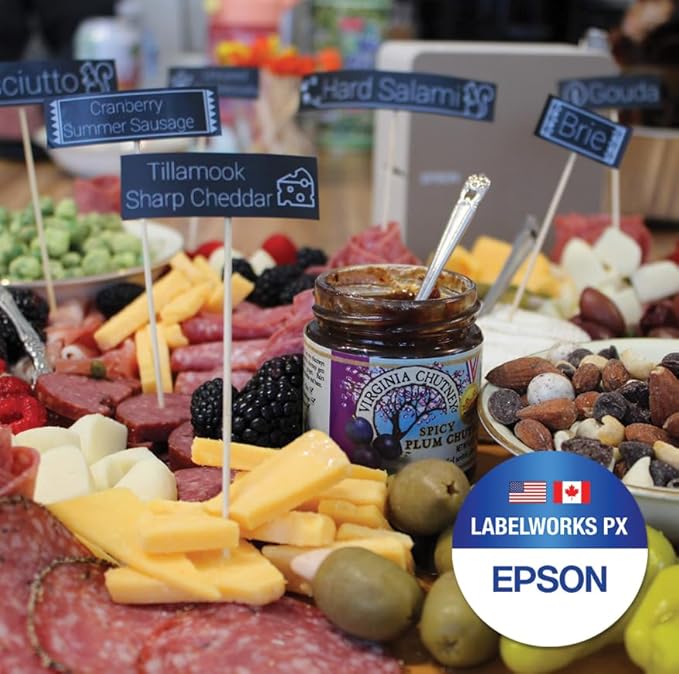 - DIMENSIONS AND COLOR - This Epson Labelworks Designer Collection tape is 3/4" (18mm) in width and 26 ft in length. The label maker tape is Matte Black and prints with White text. Works with Epson LABELWORKS PX printers and K-Sun printers, more listed below and in product description.