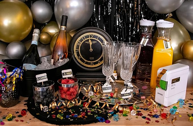 - DIMENSIONS AND COLOR - This Epson Labelworks Designer Collection tape is 3/4" (18mm) in width and 30 ft in length. The label maker tape is Metallic Gold and prints with Black text. Works with Epson LABELWORKS PX printers and K-Sun printers, more listed below and in product description.