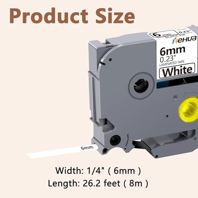 - Size - 1/4" ( 6mm ) x 26.2' ( 8m ) each 6mm label tape. Color - Black letter on clear tape