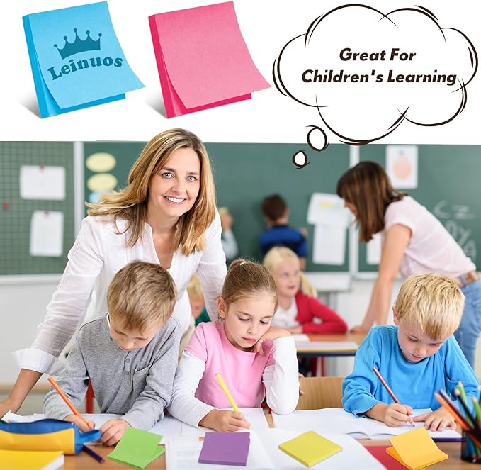 Leinuosen 102 Pack Sticky Notes 3 x 3 Inches Cute Sticky Notes Bright Colors Self Stick Pads Memo Easy to Post for Home Desk Office Notebook, Message Reminder, Stationary Supplies Office Supplies