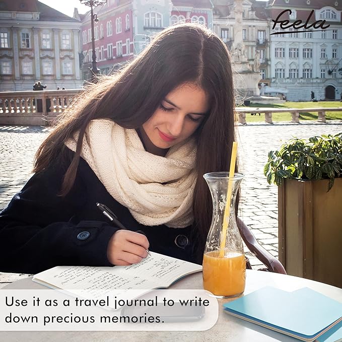 - Feela 36 Pack Soft Cover Journals include 36 light blue A5 college ruled soft cover travel journals. 250 GSM colored paper cover outside and 80 GSM smooth writing lined pages inside.